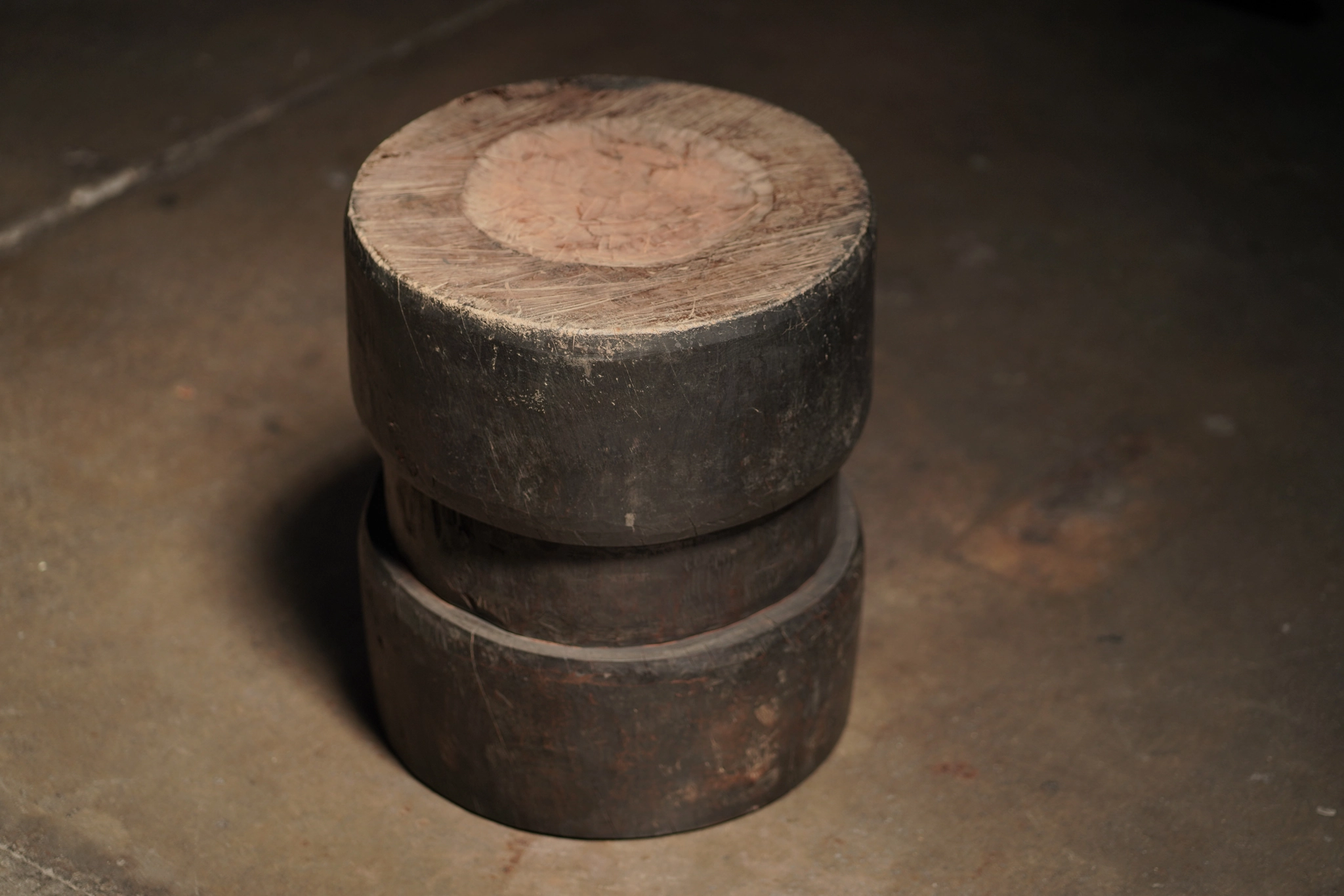 Chiseled Side Table with Patina