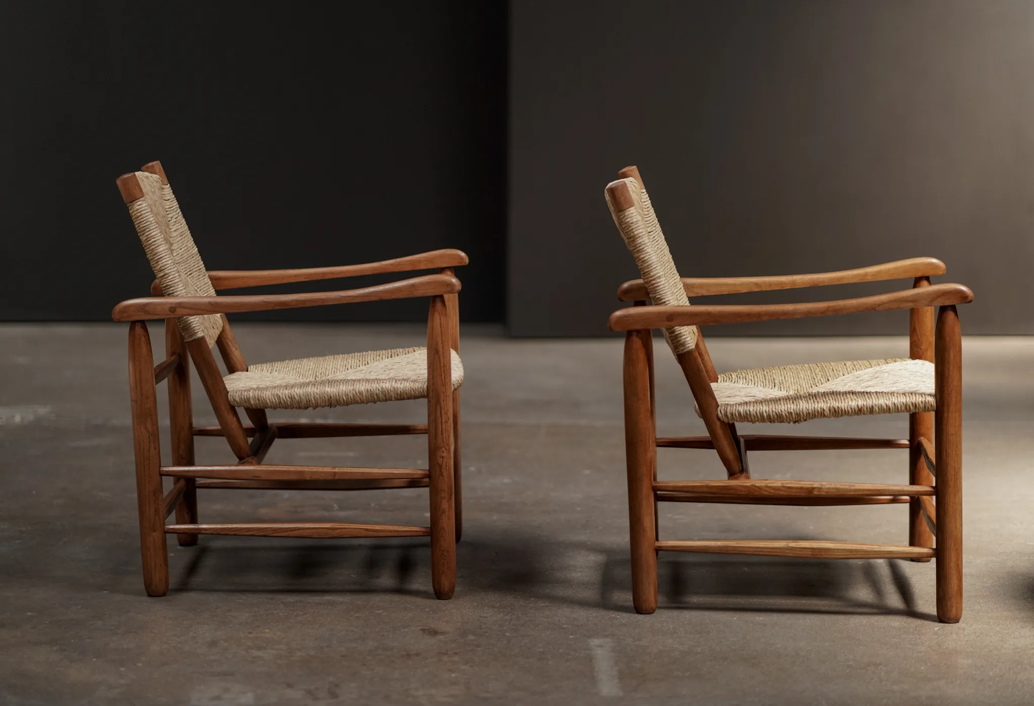Pierre Jeanneret Fireside Chairs, Taupe - Pair