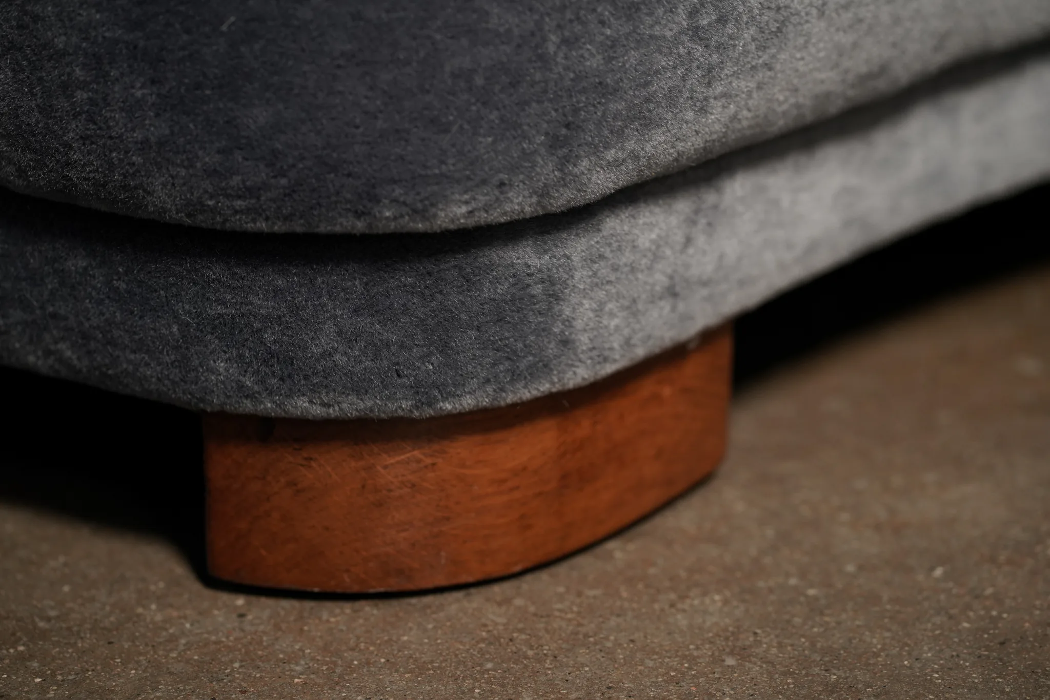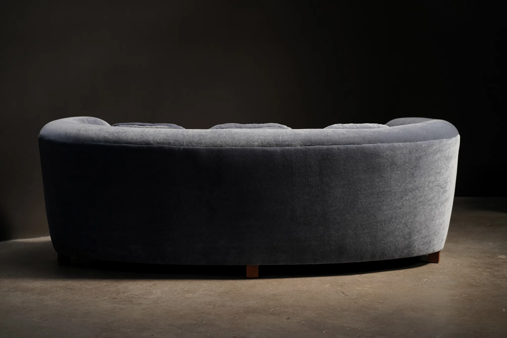 Danish Curved Sofa, Blue Mohair