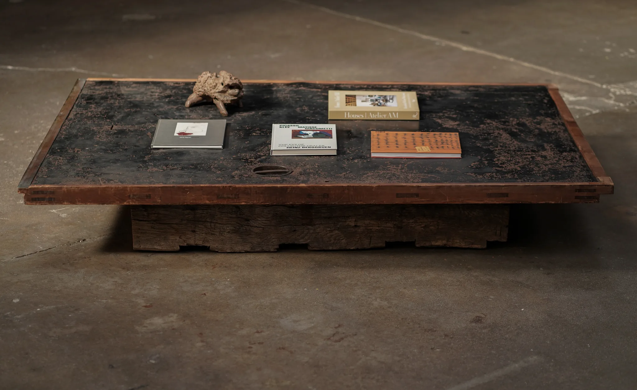 Lithos Steel Side Table, Aged Finish by Studio Balestra
